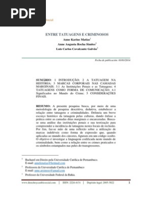 Cezinando Vieira Paredes A Influencia E O Significado Das Tatuagens Nos Presos No Interior Das Penitenciarias Pdf Free Download
