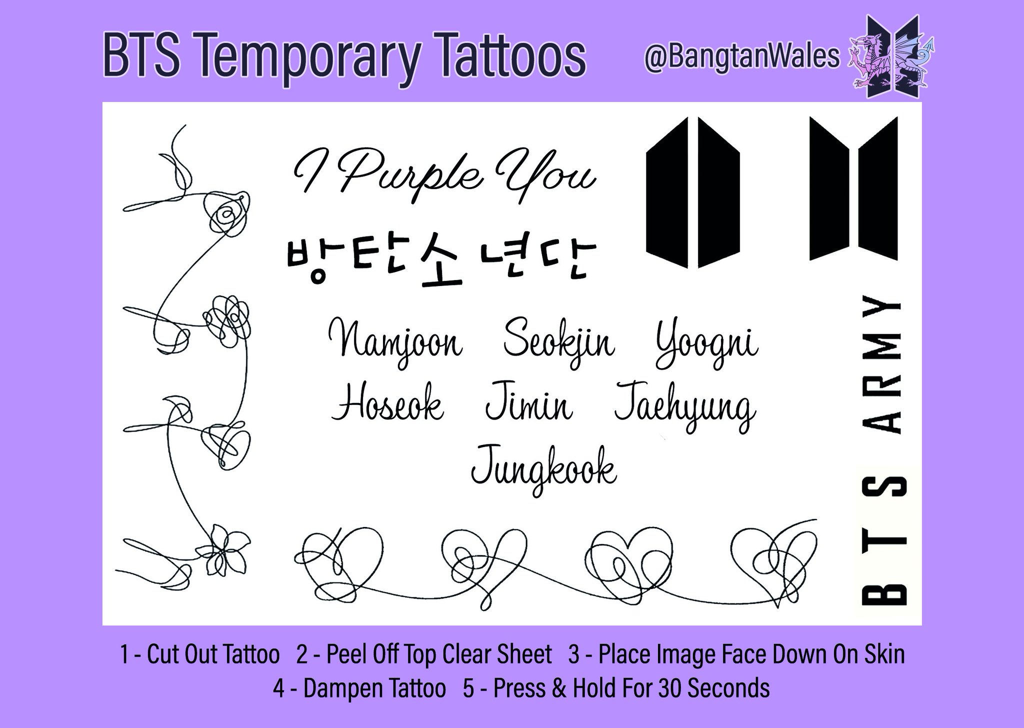 Welsh Bts Army Hiatus On Twitter Temporary Tattoos Are Now Up Two Different Sets Are Available To Purchase From Https T Co Qre26ewvnv Alsooooo Free Wordwide Shipping Bts Btstattoo Btsfanmade Btsgoods Btstattoos Fanmade Army