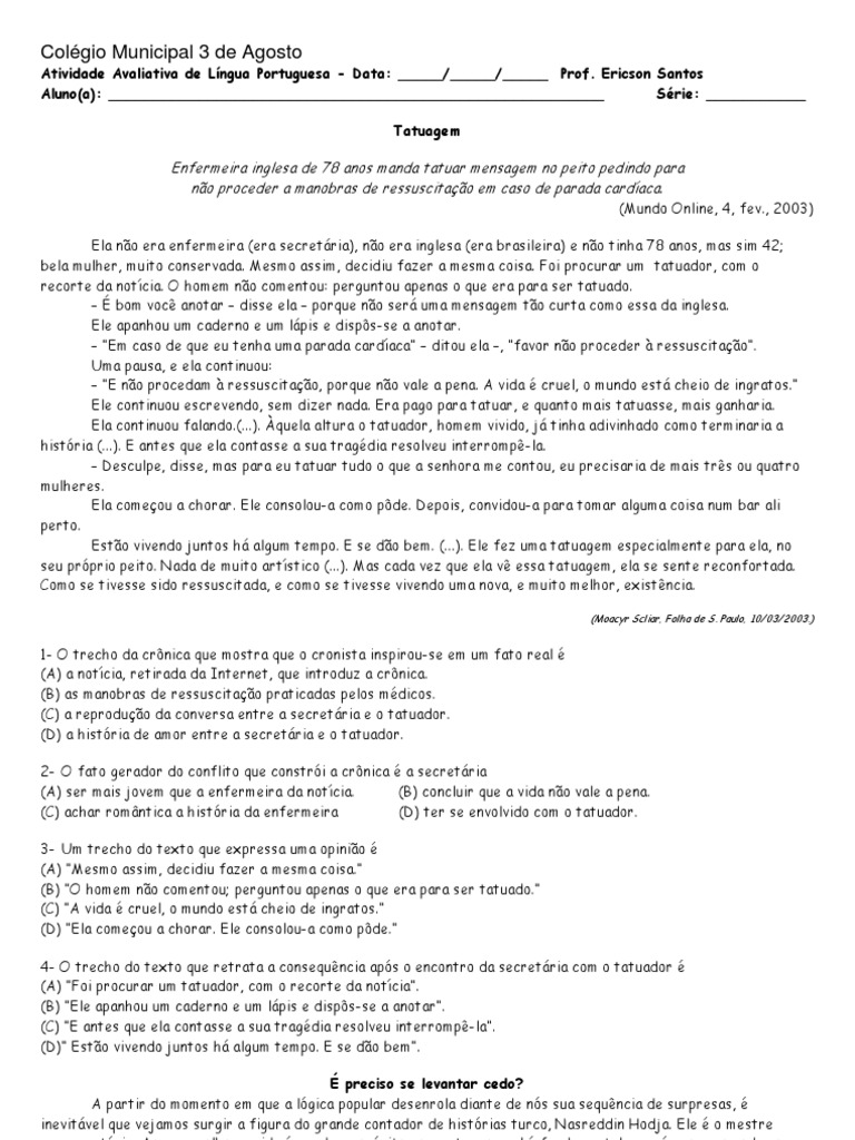 Avaliacao De Interpretacao De Texto 6 Serie Tatuagem Salomao