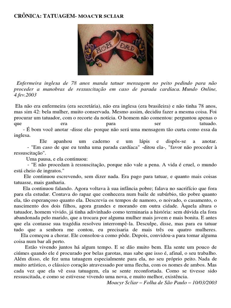 Cronica Tatuagem Moacyr Scliar Tatuagem Lazer