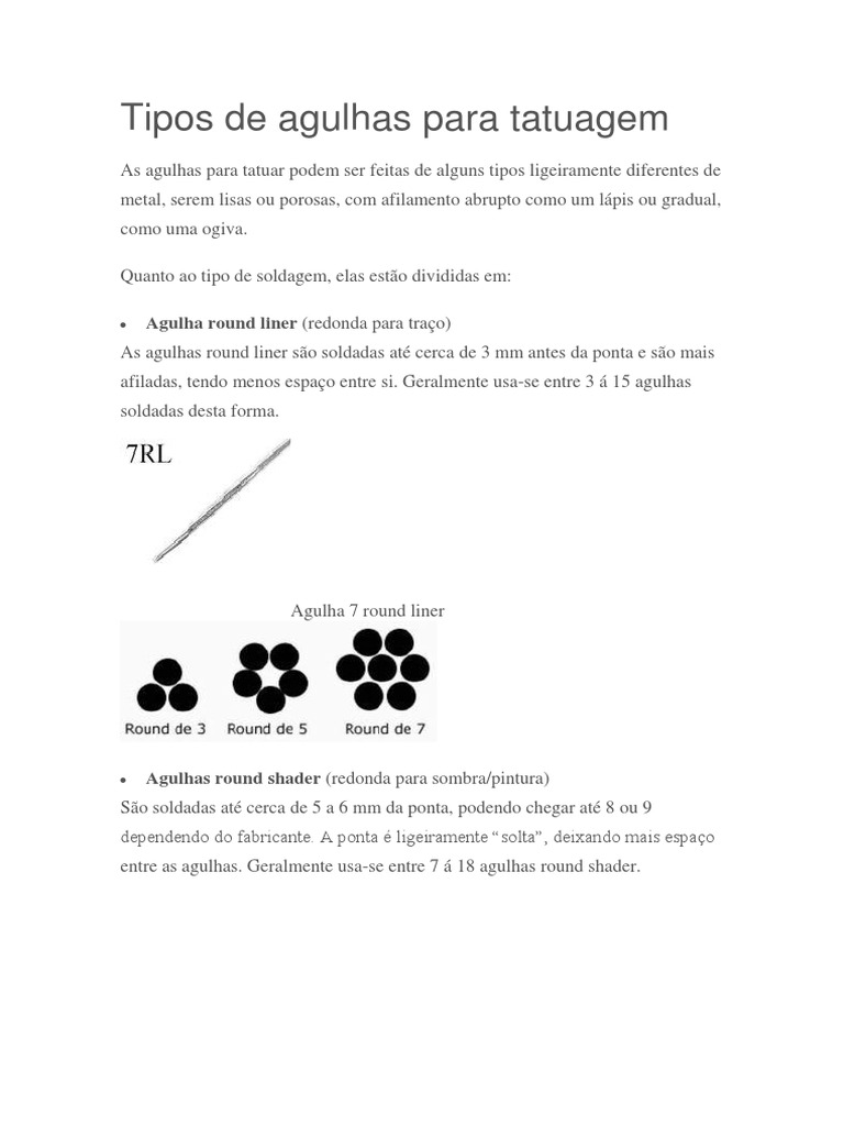 As agulhas de tatuagem são soldadas de forma linear onde a solda chega a cerca de 5mm antes da ponta. Agulhas Para Tatuagem Agulhas Elite. As agulhas para tatuar podem ser feitas de alguns tipos ligeiramente diferentes de metal serem lisas ou porosas com afilamento abrupto como um lápis ou gradual como uma ogiva.